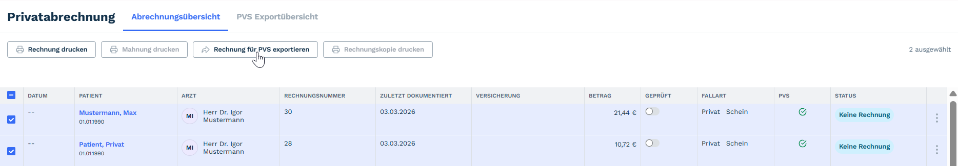 7.6 Privatabrechnung über die Private Verrechnungsstelle (PVS)